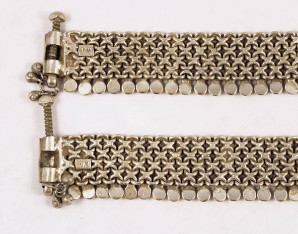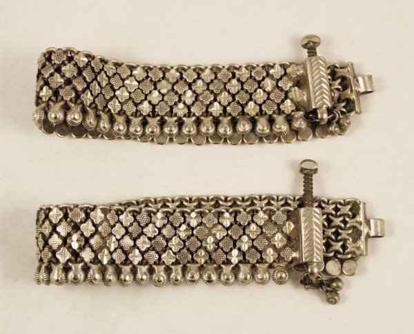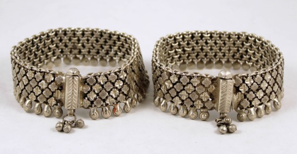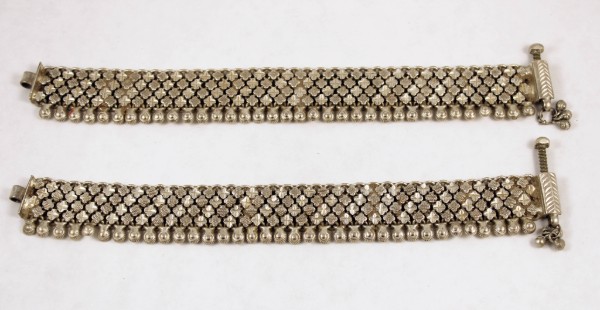 Pair of heavy silver flexible “paizebh” anklets from Central India. High-grade silver shaped in a beautiful chain.