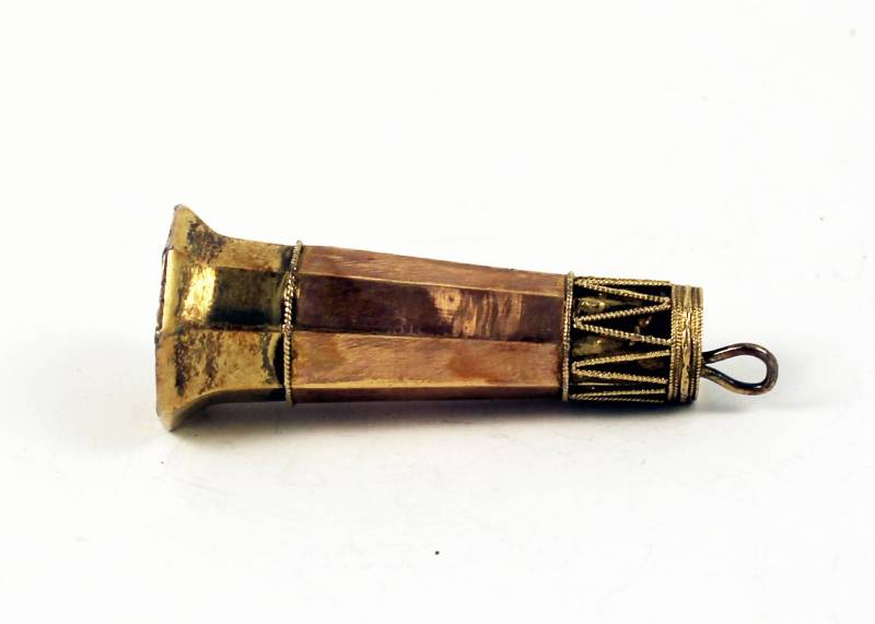 Rare Karo Batak pendant. It shows sparse decoration woth filigree and granulation. It may have been an amulet container.