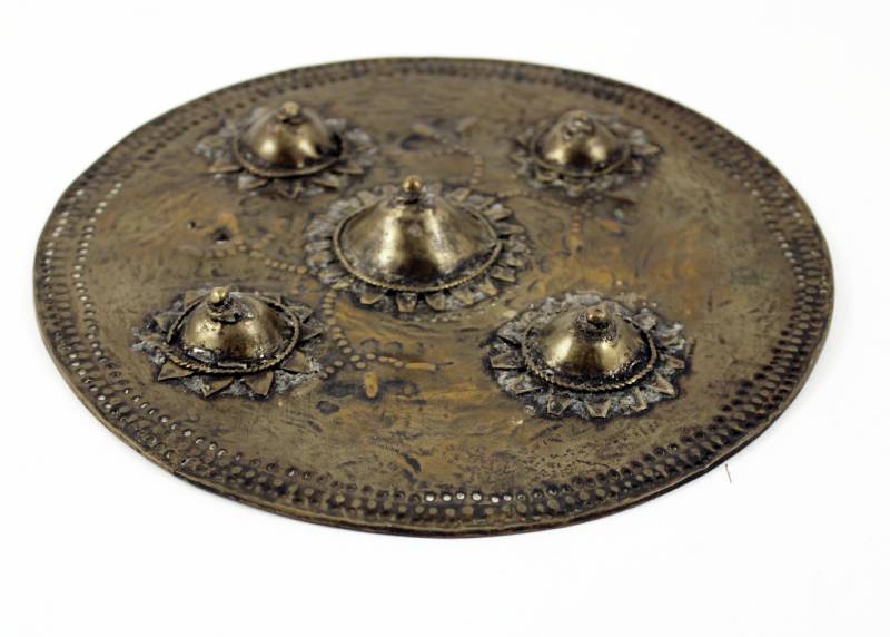 Pectoral discs are status symbols that originally began as emblems of greats deeds in war, headhunting or hunting. Associated with celestial bodies, depicted as great hunters in local mythology, the discs may be plain or decorated, like this one. The same discs are worn by women after they give birth, together with other warrior’s ornaments.